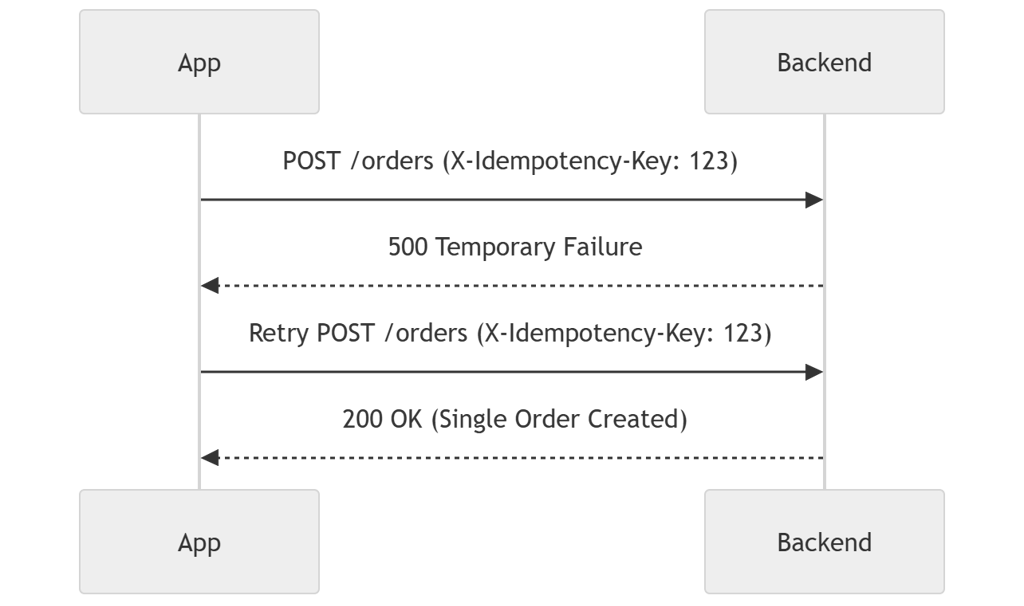 Backend must store idempotency keys for a safe time window.