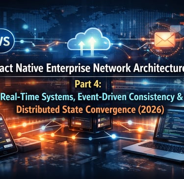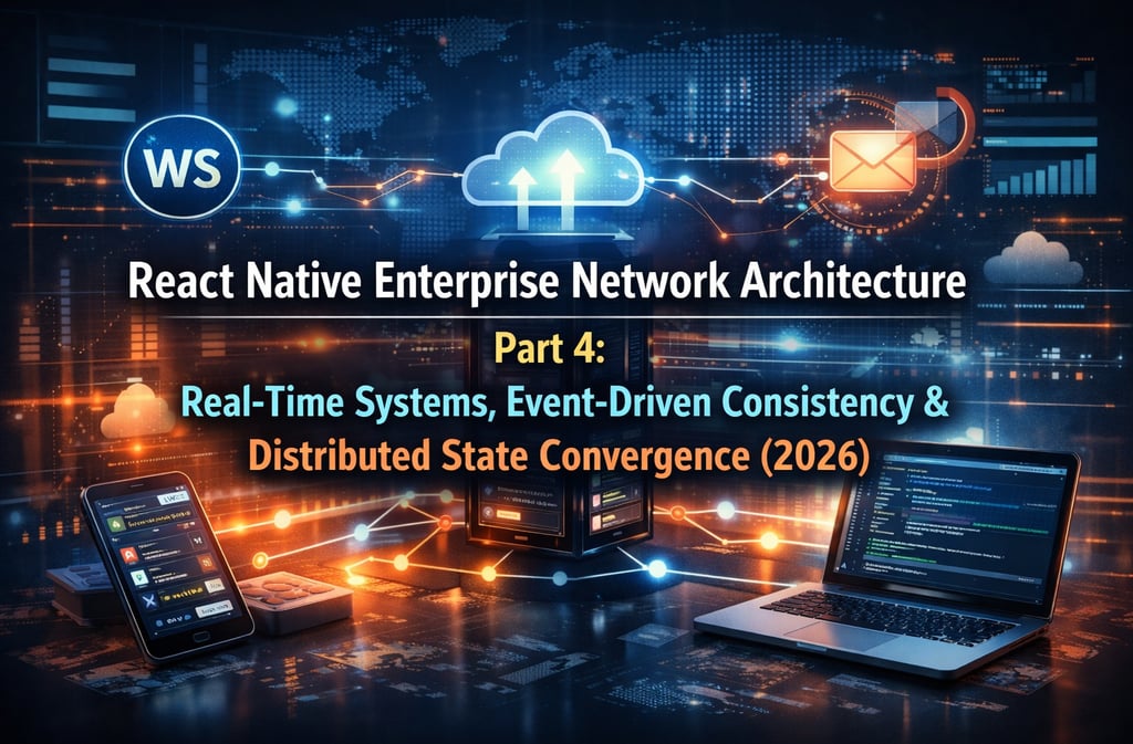 React Native Enterprise Network Architecture Part 4 explores real-time, event-driven systems with WebSockets, distributed state convergence, multi-device sync, and conflict resolution.